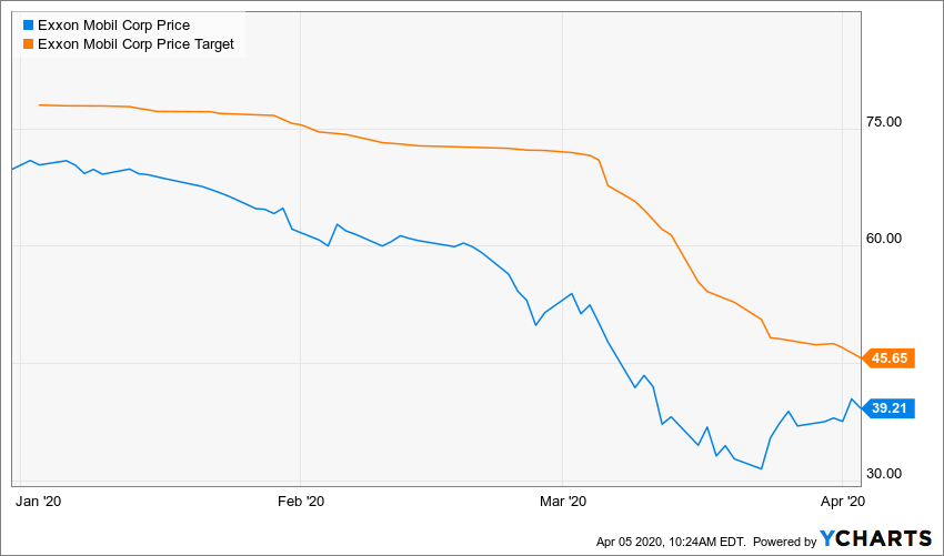 There’s an expectation by many investment firms and analysts that Exxon Mobil’s business will be understandably challenged this year. RBC Wealth Management downgraded the stock to Underperform from Sector Perform last month, reducing its price target to $40 from $55. Additionally, cash flow and leverage measures have fallen below S&P Global’s expectations, resulting in its credit rating, falling to AA from AA+. However, despite a bearish outlook for Exxon Mobil, the stock has rallied some in recent days as expectations of the price war for oil eases.