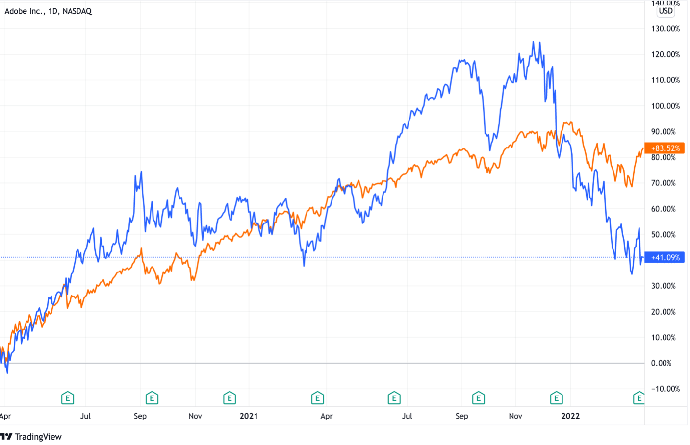 February and March were not easy months for investors, with volatility in the market due to uncertain times throughout the world; Russia’s war in Ukraine, rising gas and oil prices, inflation, and impending interest rate hikes all impact the United States (US) economy. Like other software and technology companies, Adobe has been complying with government sanctions imposed by the US, European Union, and the United Kingdom by terminating access to many of its products and services to Russia and halting all new sales of Adobe products and services in Russia. While seen as a temporary action, these various changes will negatively impact Adobe’s potential revenue stream for 2022.
