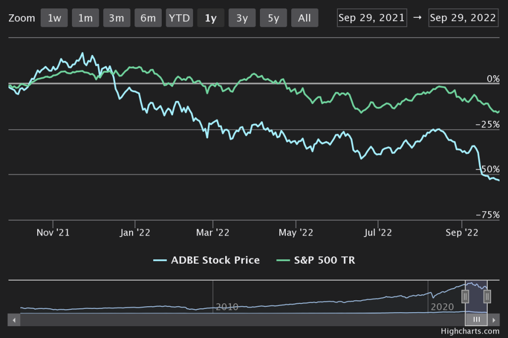 The software company announced in mid-September that it would purchase Figma for about $20 billion in cash and shares. Figma is a collaborative web application for interface design that is popular with designers and developers. While the business venture may strengthen creative collaboration, the acquisition announcement contributed to a dip in Adobe’s stock performance in recent weeks.
