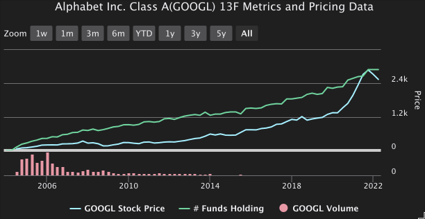 Alphabet, Inc. (GOOGL) continues to ride the wave of market volatility, and the company narrowly outperformed the S&P 500 with a loss of almost 1.0% compared to the S&P’s loss of about 1.9% over the past year. Hedge funds sold as Alphabet continued to lose momentum, though the stock rose on the WhaleWisdom HeatMap to a rank of ten from twenty-four.