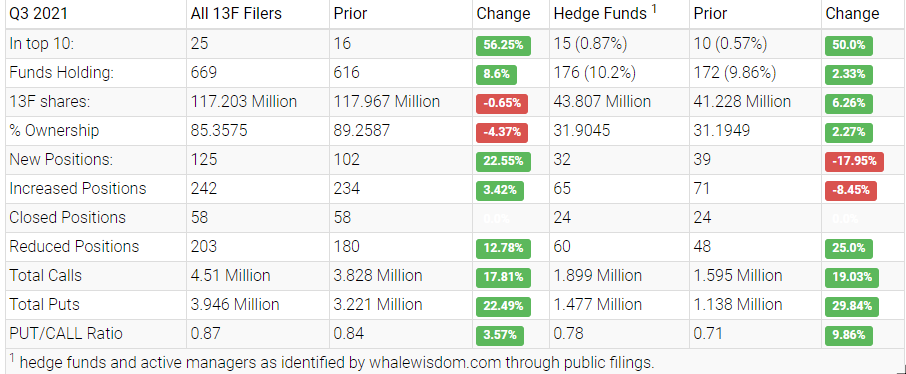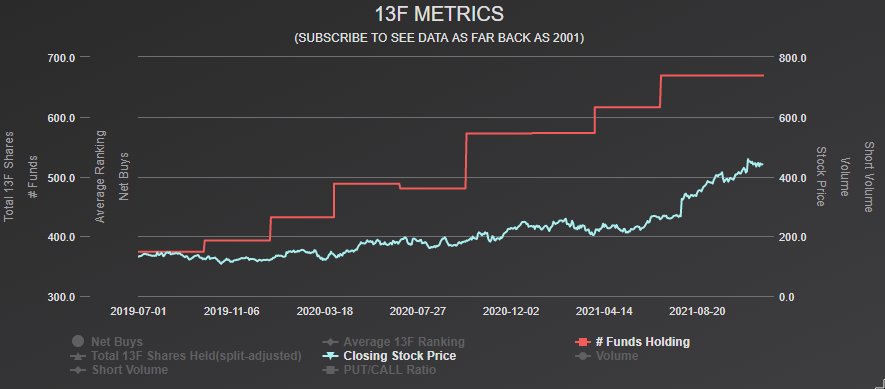 Atlassian garnered the attention of hedge fund managers, and in the third quarter, aggregate 13F shares increased to about 43.8 million from 41.2 million, representing an increase of approximately 6.3%. Of the hedge funds, 32 created new positions, 65 added to an existing holding, 24 exited, and 60 reduced their stakes. In contrast, Institutions were selling, with aggregate holdings decreasing by about 117.2 million to approximately 117.2 million from 118 million. Also, the 13F metrics between 2019 and 2021 suggest that Atlassian’s investment potential has been solid and consistent.