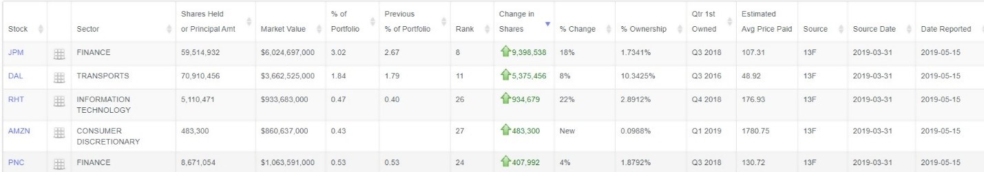Berkshire Hathaway Inc., led by iconic investor Warren Buffet, made a couple of surprising moves in the first quarter of 2019. The most astonishing move was the addition of Amazon.com Inc. (AMZN) to the portfolio, as well as adding to its already enormous position in JPMorgan Chase & Co. (JPM). Meanwhile, the firm continues to reduce its significant stake in Wells Fargo Co. (WFC). But overall, the bank stocks appear to be the focus of the firm as of right now.
