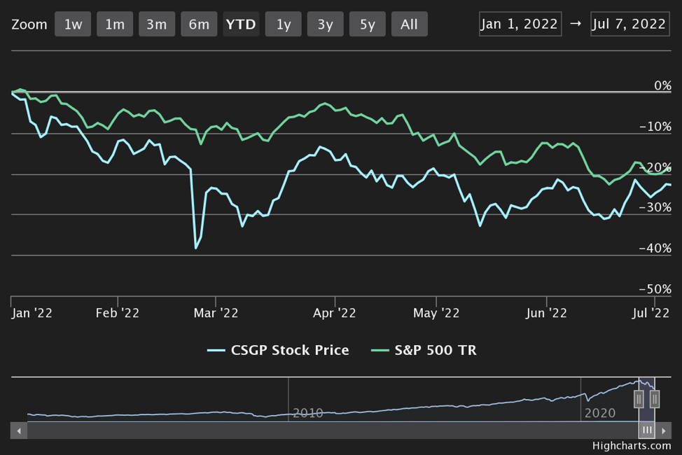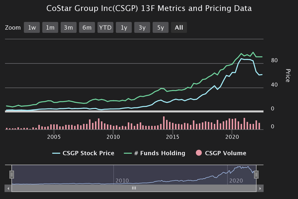 CoStar Group, Inc. (CSGP) saw its stock dip amid a volatile market this year. CoStar Group continues to underperform the S&P 500, falling approximately 24% year to date, while the S&P was down about 20% as of July 2022. Amidst stock fluctuations this year, hedge funds were actively buying the stock in the first quarter, and CoStar Group was added to the WhaleWisdom WhaleIndex 100 on May 17, 2022.