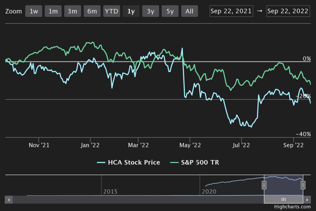 HCA Healthcare owns and operates healthcare facilities across the United States and the United Kingdom. Its medical facilities include a range of hospitals, medical clinics, and ambulatory care sites, offering inpatient care, intensive care, cardiac care, diagnostic, and emergency services. HCA Healthcare’s potential for growth depends upon patient volume and revenue collected from patients and third-party insurance payers. The Coronavirus pandemic has stressed HCA Healthcare and the healthcare industry, contributing to surges in some areas of business, declines in others, and rising medical costs.