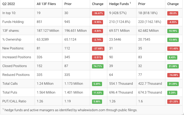 HCA Healthcare saw a mixed response from hedge funds and institutions in the second quarter of 2022. Hedge Funds added to their portfolios in the second quarter, and the aggregate 13F shares increased to approximately 69.6 million from 62.7 million, a gain of about 11.0%. Overall, 31 hedge funds created new positions, 90 added, 39 exited, and 64 reduced their stakes. Institutions adjusted their portfolios, lowering their holdings by about 4.8% to 187.1 million shares.