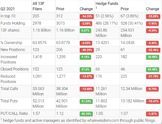 Despite Disney’s overall year-to-date growth, hedge funds were actively selling the stock in the second quarter, and the aggregate 13F shares held by hedge funds decreased to approximately $243.9 million from $254.9 million, a decline of about 4.3%. Overall, 29 hedge funds created new positions, 220 added to an existing ones, 66 exited, and 176 reduced their stakes. Institutions slightly increased their aggregate holdings by about 0.1% to $1.2 billion. The 13F metrics between 2001 and 2021 reflect Disney’s rising stock price and demonstrate the potential for the stock to continue a forward trend.