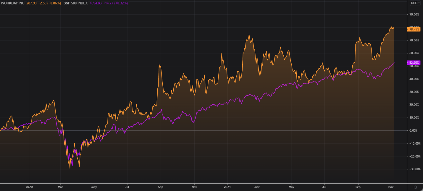Workday provides enterprise cloud applications for finance and human resources to help businesses manage critical functions and optimize their financial and human capital resources. Workday’s applications assist companies, educational institutions, and government agencies with everything from accounting functions to procurement, time tracking, and talent management. Throughout the coronavirus pandemic, Workday has been able to leverage the accessibility and flexibility of its cloud-based applications to promote its value in helping businesses navigate dynamic workforces and changing needs.