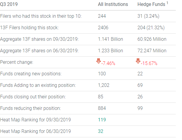 Disney’s stock has fallen out of favor with investors in the third quarter, with the shares failing to meet expectations and sinking on the WhaleWisdom Heatmap. Hedge Funds and Institutions both decreased their holdings in the company during the quarter.