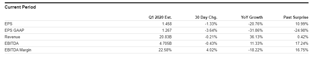 Analysts’ consensus estimates for the upcoming first quarter show negative year over year growth of about -20.8% from 2019 to 2020.