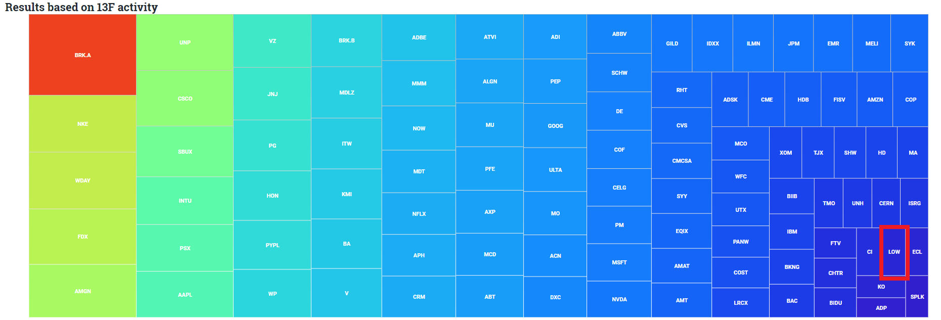 Lowe’s stock peaked in late October around the same time the PHLX Housing Sector (HGX) began to tumble. Perhaps the top hedge funds that make up those in the heat map were paying more attention to the rising mortgage rates and the struggling housing sector.