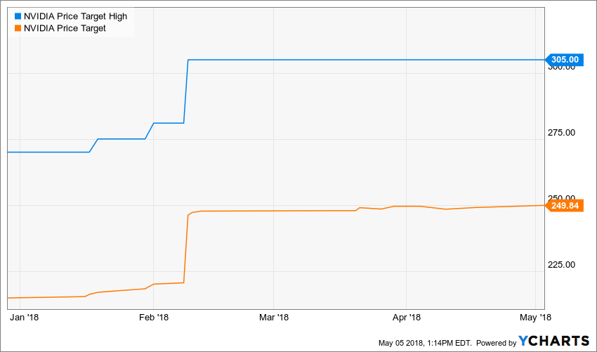 Analysts are looking for shares of NVIDIA to climb in the future, with an average price target on the stock at around $250. Meanwhile, 58 percent of the 36 analysts covering the stock rate shares as a “buy” or “outperform,” while 33 percent rate shares a “hold.” However, some analysts see the price rising much higher, to $305, based on data provided by Ycharts. Those targets have steadily climbed over the years, as the company consistently beats earnings and revenue targets.