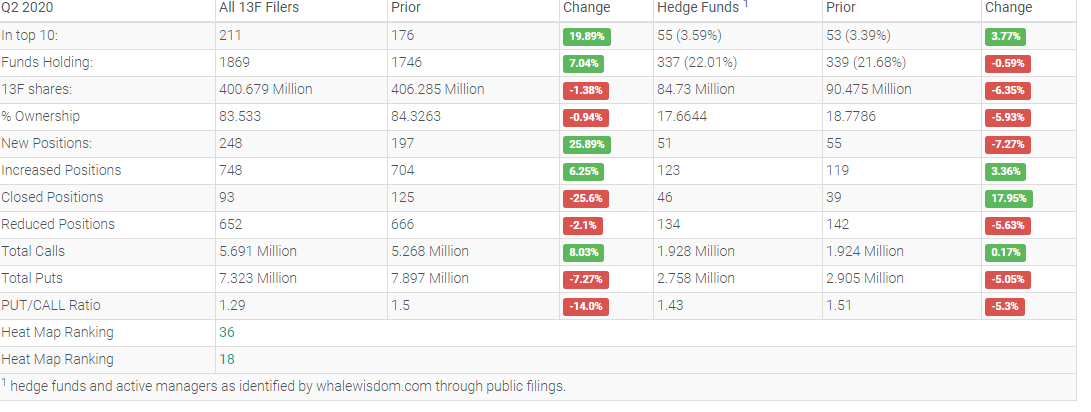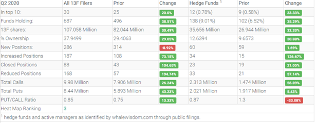 Upwork has hedge fund managers and institutions taking notice. Looking at the second quarter activity by the top hedge funds, the aggregate 13F shares held jumped to about 27 million from 24.7 million, an increase of approximately 9.3%. Of the hedge funds, 23 created new positions, 11 added to an existing holding, 16 exited, and 19 reduced their stakes. Overall, institutions increased their aggregate holdings by about 13.7%, to approximately 71.9 million from 63.3 million.