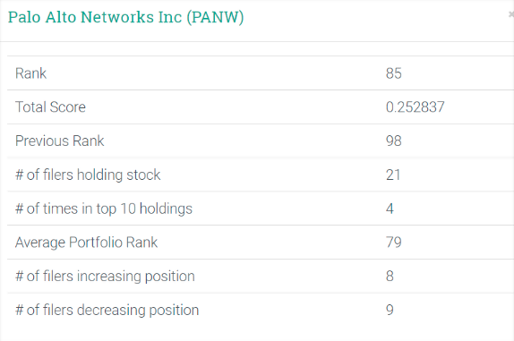 It hasn’t been the most fabulous year for Palo Alto Networks Inc. (PANW), with the stock rising by 20.5% and underperforming the broader S&P 500 by five percentage points. Still, the stock was very active among investors during the third quarter, resulting in the shares landing on the WhaleWisdom Heatmap, and the WhaleWisdom Whale Index 100.
