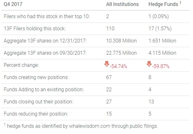 It would also seem that not many hedge funds or institutions were buying shares of Roku during the fourth quarter as the stock was climbing. In fact, when reviewing the data, it appears they have been selling their shares. During the quarter 67 funds created new positions and 22 added to existing positions, while 27 closed out their positions and 15 reduced the stake. However, the number of aggregate 13F shares on December 31 was only 10.3 million, down nearly 55 percent from 22.77 million on September 30.