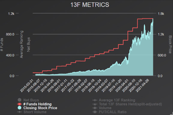 Analysts expect to see earnings rise modestly in 2021 and 2022 to an estimated $6.52 per share and $6.59 per share, respectively. Revenue estimates are encouraging, increasing to approximately $4.6 billion predicted for December 2021 and $6.2 billion for December 2022. The 13F metrics between 2015 and 2021 demonstrate that Shopify’s investment potential remains on an upward trend.