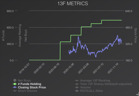 Hedge Funds were actively selling the stock in the third quarter, and the aggregate 13F shares held by hedge funds decreased to approximately 99.5 million from 104.6 million, a change of about 4.9%. Overall, 35 hedge funds created new positions, 67 added to an existing one, 26 exited, and 51 reduced their holdings. In contrast, Institutions increased their aggregate holdings by about 9.7%, to 204.9 million from 186.8 million. Also, since going public in 2020, Snowflake’s 13F metrics showed slow momentum while its closing stock price fluctuated.