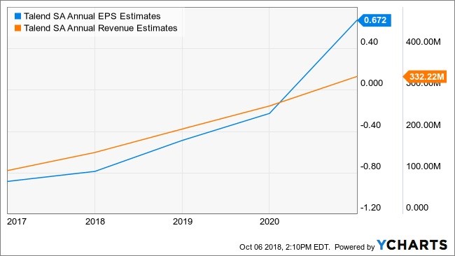 Investors are attracted to the data integration provider because revenue for the company is expected to explode over the coming years. For example, analysts see revenue growing at a compounded annual growth rate of almost 31% from 2018 through 2020. Revenue in 2017 totaled under $149 billion and is forecast to more than double to $332 million by 2020.