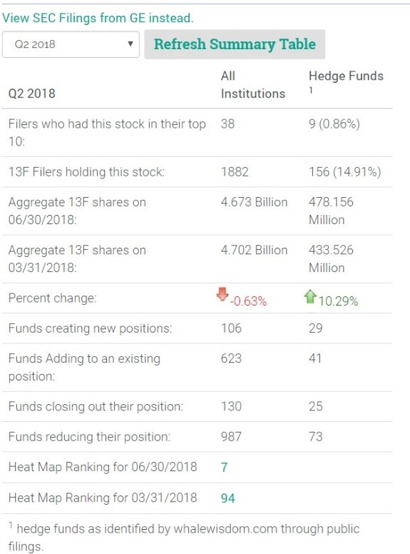 During the quarter other hedge funds were buying shares of GE and increasing their stakes. The total number of 13F shares held by hedge funds increased by more than 10 percent to 478 million shares. A total of 70 funds added to or started new positions in the stock. Meanwhile, 98 funds closed or reduced their stakes.