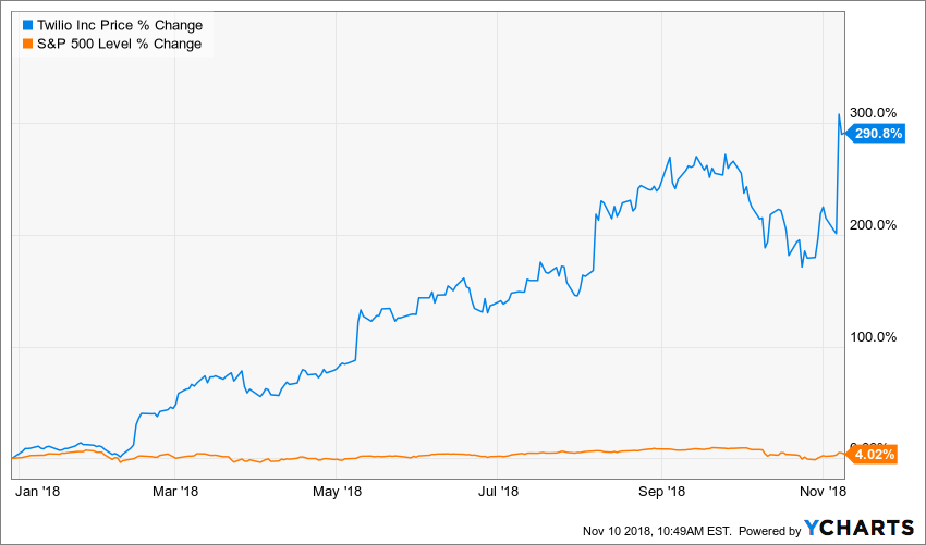 To say that Twilio Inc. (TWLO) has had a healthy 2018 is an understatement. That is because the stock has risen by nearly fourfold this year, crushing the S&P 500’s return of 4%. It is hard to find any stock that has put together the same type of performance this year.