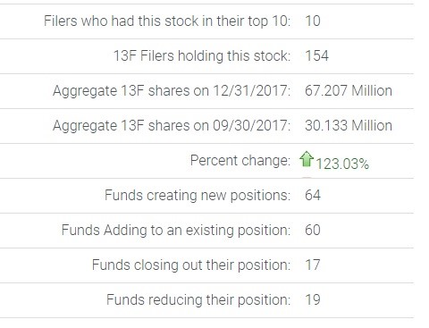 According to data on WhaleWisdom’s website, 64 funds created new positions in the stock during the fourth quarter, while 60 funds adds to their current holdings. However, surprisingly, only 17 funds closed out their position, while 19 lowered their stakes.