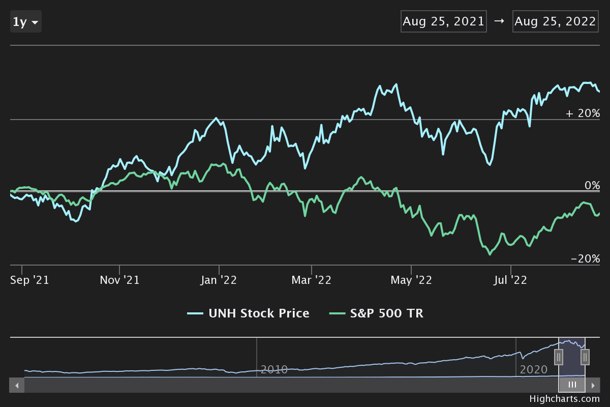 UnitedHealth is an American healthcare and insurance company with two segments: UnitedHealthcare and OptumRx. Its UnitedHealthcare segment offers employers consumer-oriented health benefit plans and services, while the OptumRx business line provides pharmacy services and programs. UnitedHealth is one of the nation’s largest health insurers, offering a variety of health benefit plans and programs with the mission of helping people live healthier lives and improving the health care system’s performance.