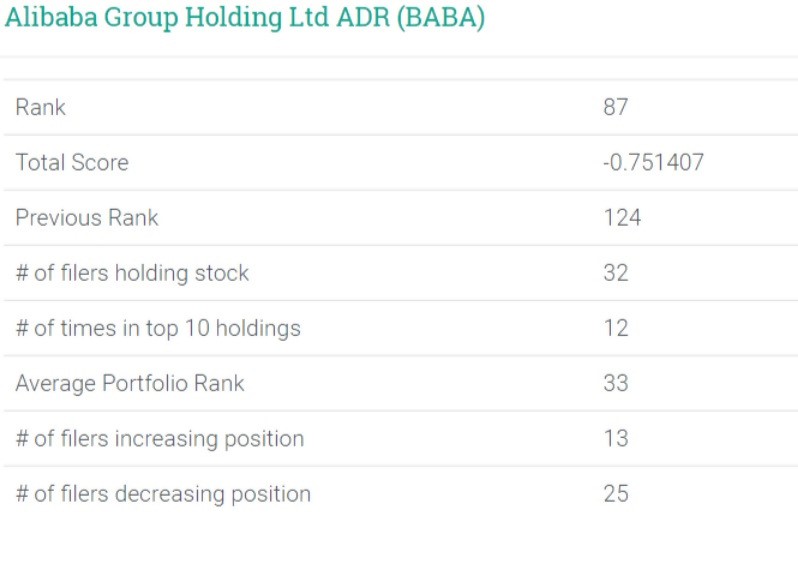 Fourth quarter holdings revealed that 32 of the 150 hedge funds tracked for the heat map held shares of Alibaba, while 12 of the funds held the stock among their top-10 holdings. Additionally, 13 funds increased positions and 25 funds decreased holdings. However, what’s more interesting is that overall total institutions were buying the stock, with the number of total shares rising by 4% to 1.03 billion.